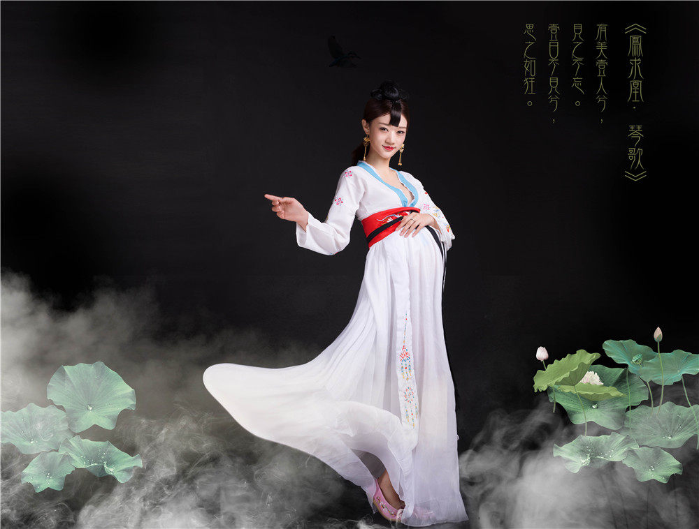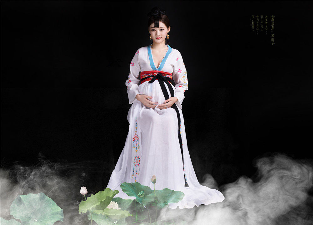 Pregnant women photograph Han clothing theme photograph written true clothes pregnant women pictured mommy art photo