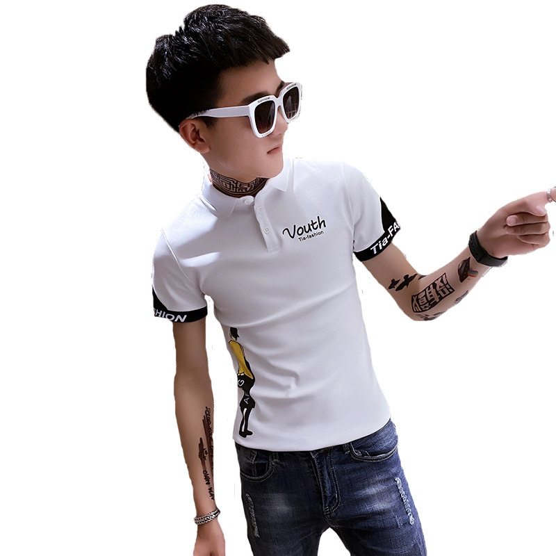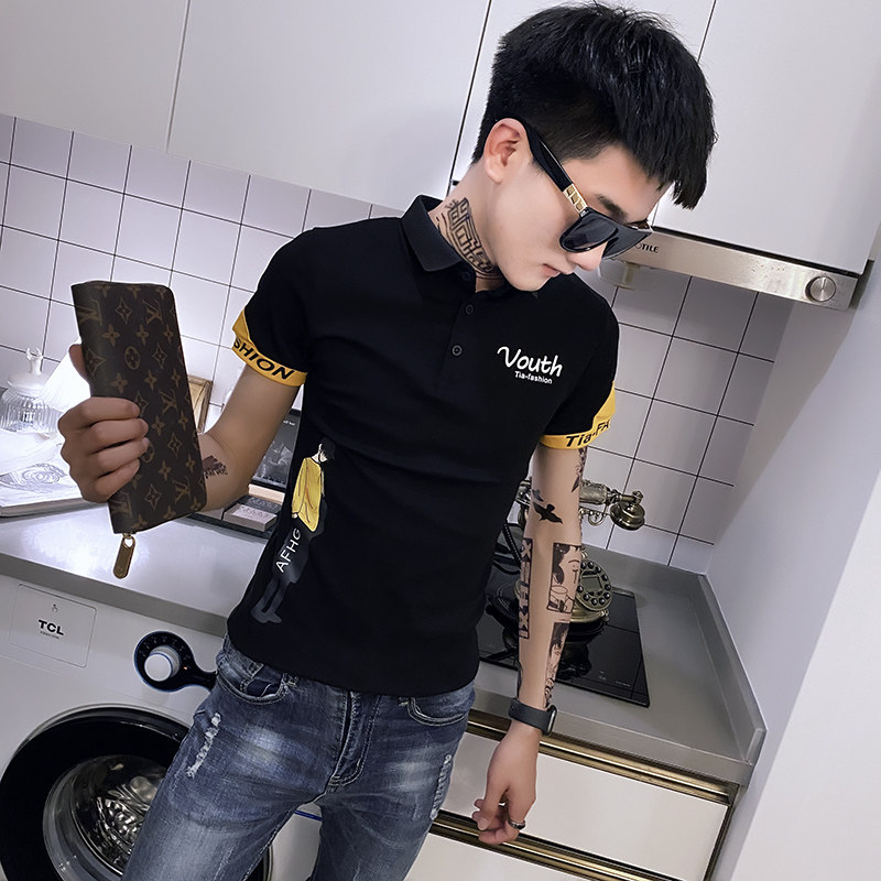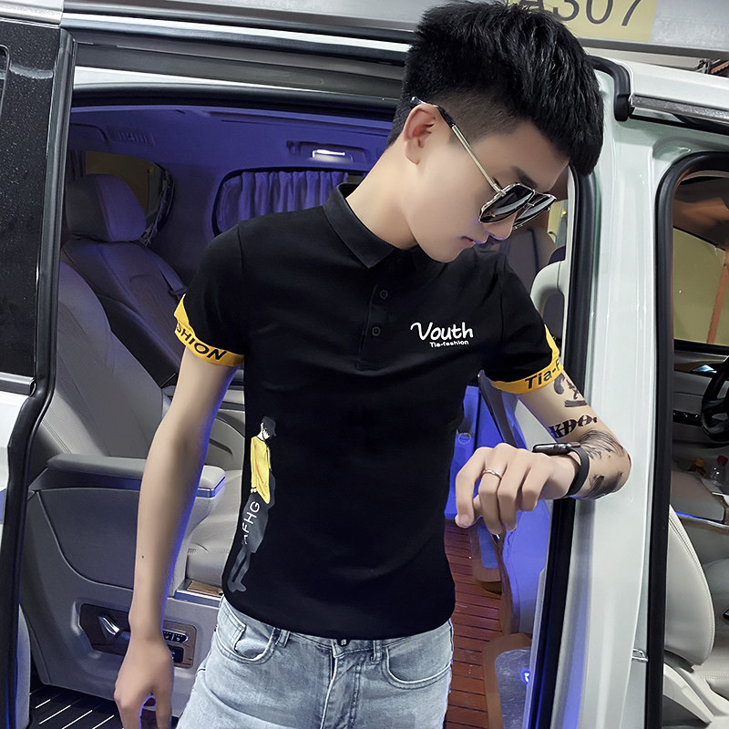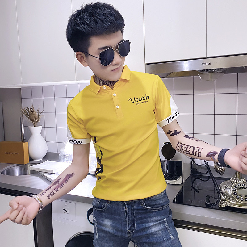 Short-sleeved T-shirt Men's Summer Tide Fashion Color Polo Shirt Korean Slim Top Clothes Half Sleeve T-shirt