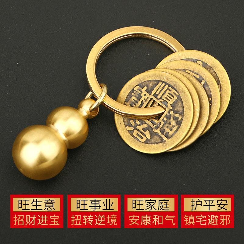 Copper gourd keychain pendant Keychain Men's keychain Wudi Qian Pendant Brass pendant Copper coin