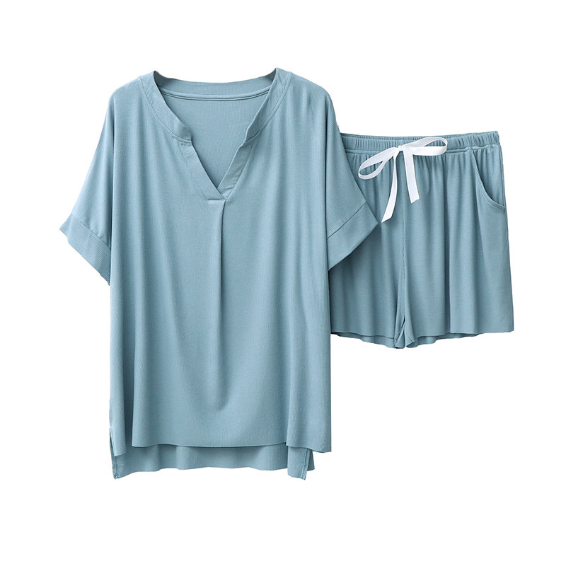 2020-thin-style pyjamas for women Sharo tattoo with heart cut Modale cotton shorts short sleeve home suit V collar