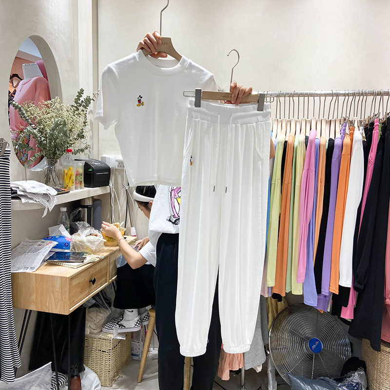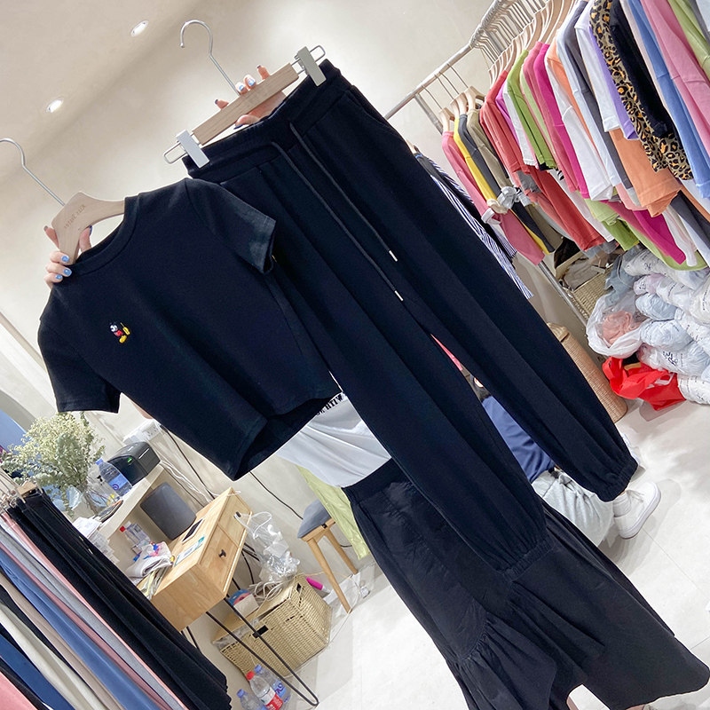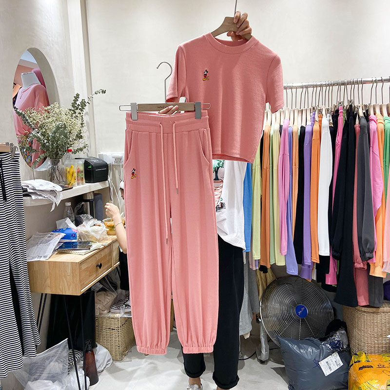 ins ultra fire Mitch suit women summer dress net red port wind Korean version tide short sleeve long pants sports casual two-piece style