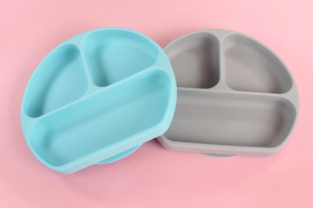Bumkins children's dinner plate silicone anti-fall non-staple food bowl divided suction cup bowl baby tableware training elbow spoon