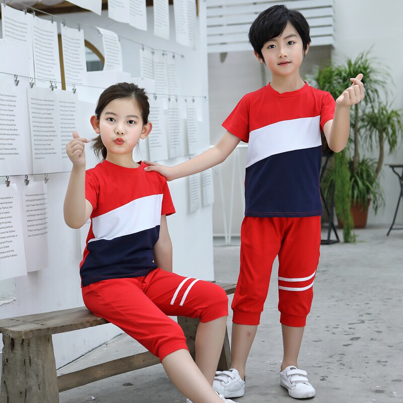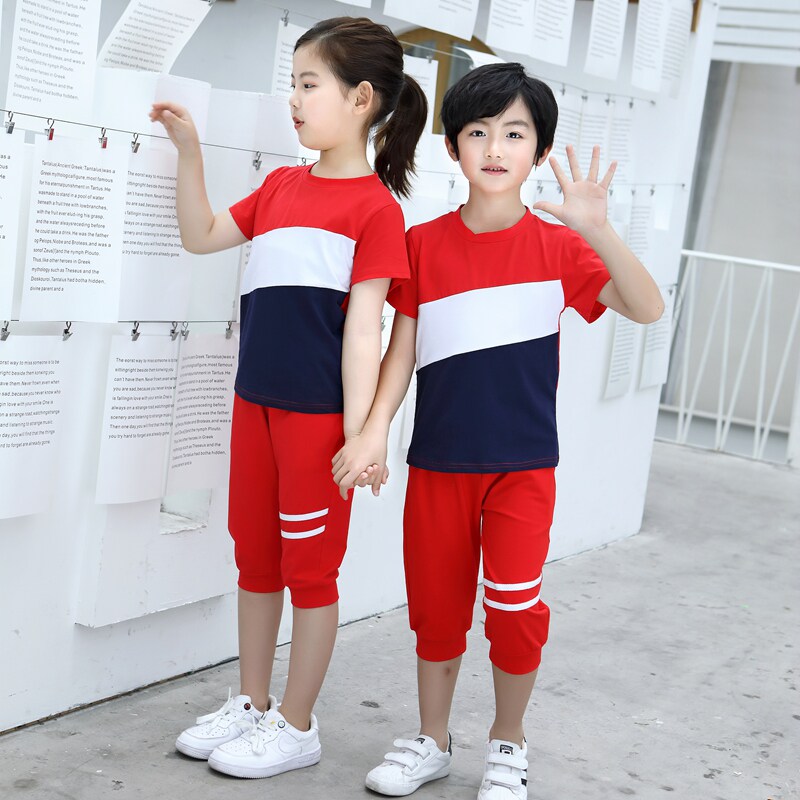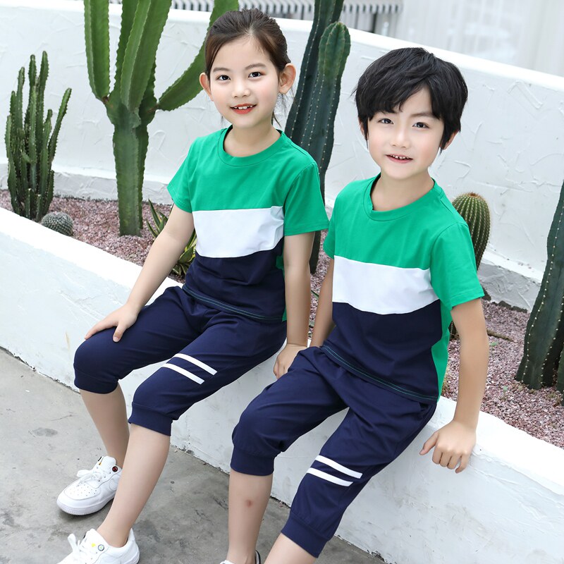 Children Class Clothes Summer Clothing Short Sleeves Elementary School Uniforms Sportswear 7 Pants Suit Kindergarten Garden Clothing Summer Tide