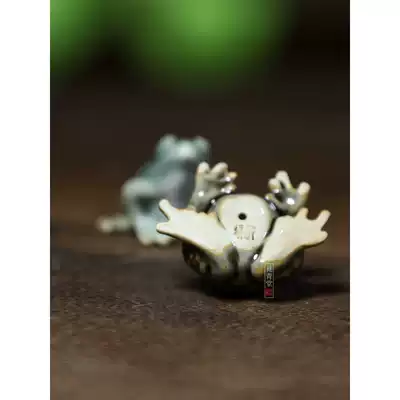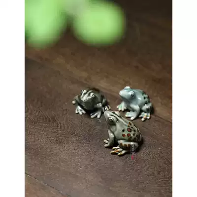 Longquan celadon Zhou Jingbo handmade tea pet frog Plum Green Tea Zhuo ornaments Chinese style play literati Elegant Gifts