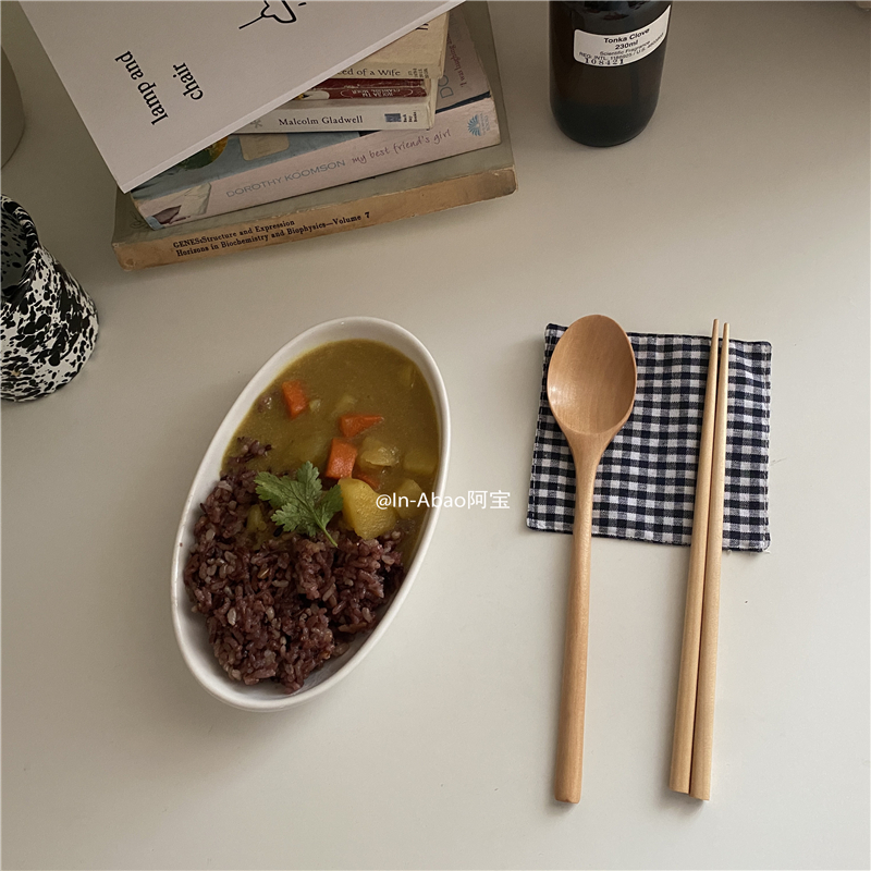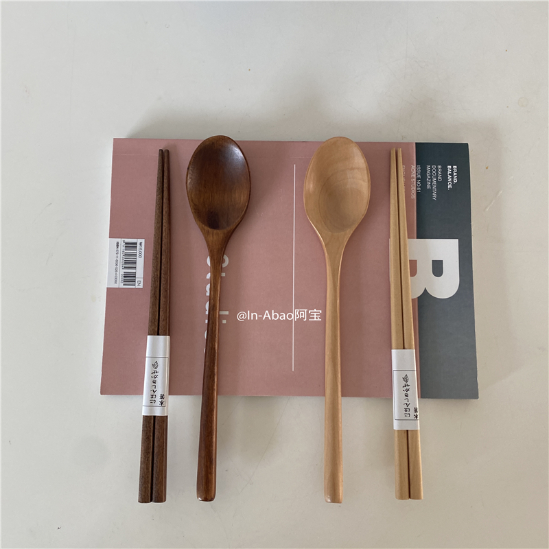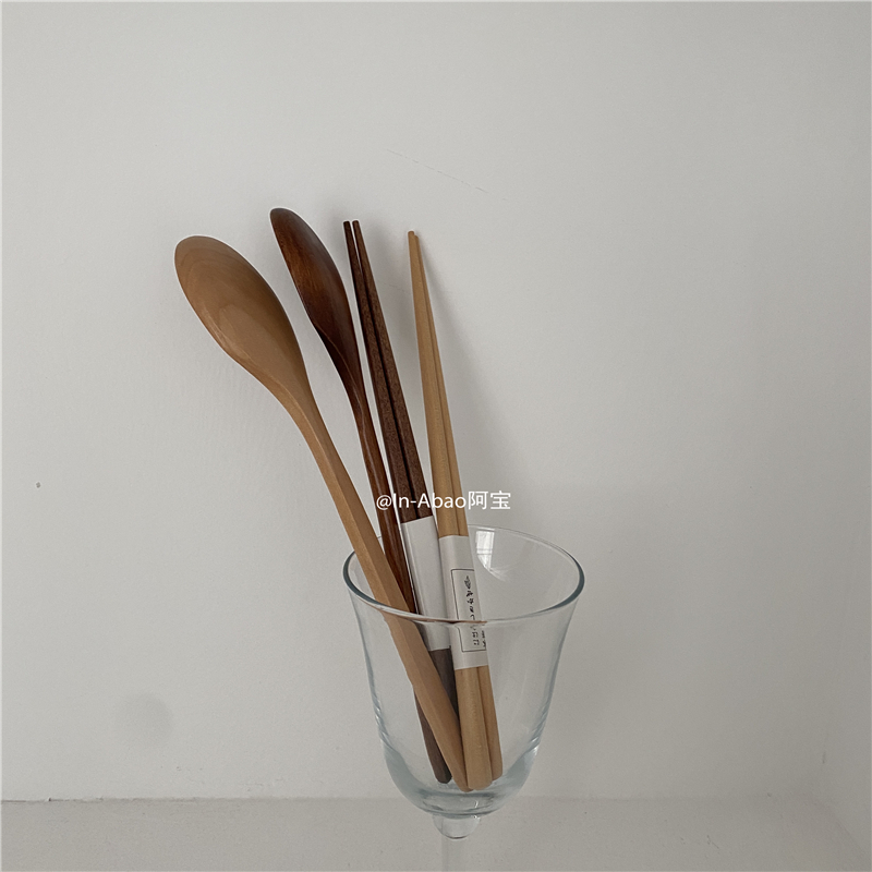 Aobao-South Korea Ins extremely simple and pure wood Nangwood chopstick spoon suit Dormitory Student Day Style Portable Cutlery 2 pieces