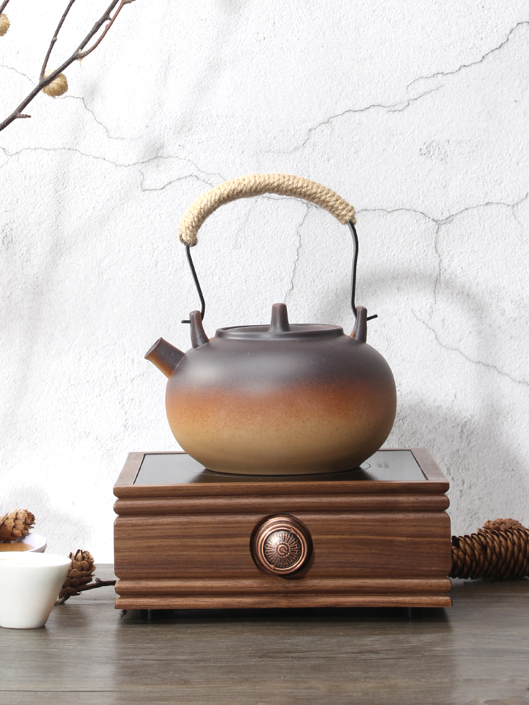 Thousands Ancient Church Tea Set Black Crystal Stove Tea Making Stove Solid Wood Cooking Tea Instrumental Light Wave Oven Muted Induction Cookware Burning Water Little Tea Oven Home