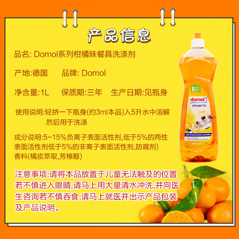 German domol dishwashing detergent dish washing detergent Home kitchen cleaning de-oiling dish washing detergent citrus flavor 1 liter