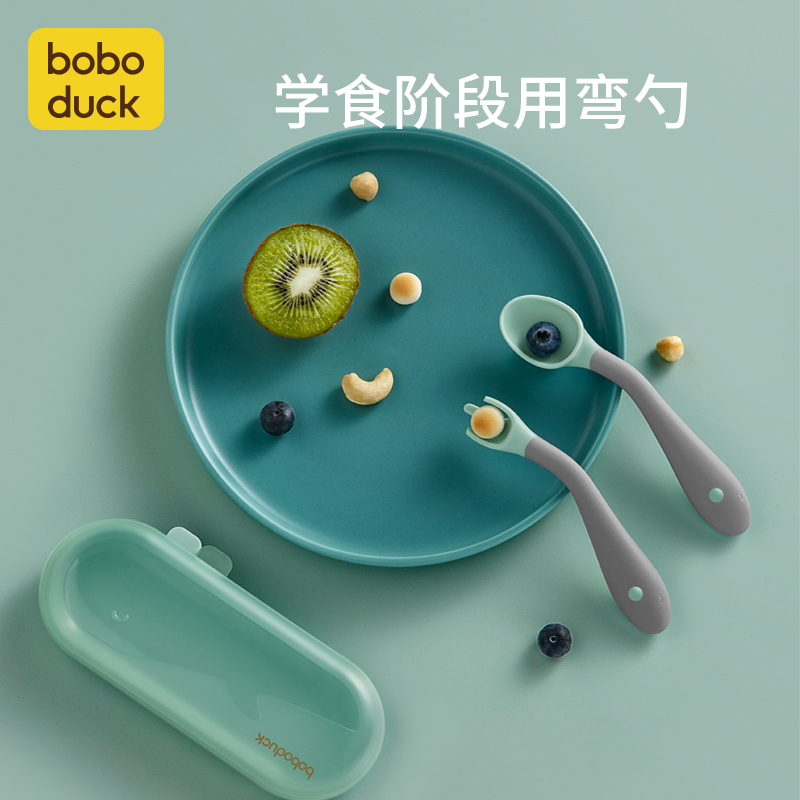Big Mouth Duck Baby School Eating Training Spoon Baby Coveted Bend Soft Tablespoon Fork One-year-old Children Cutlery Sets