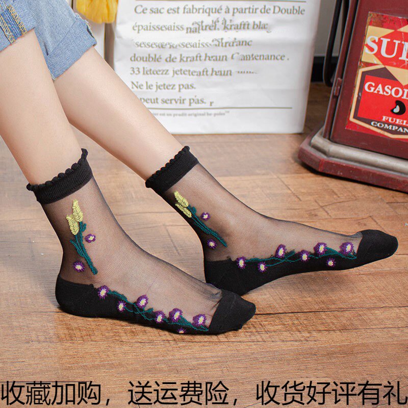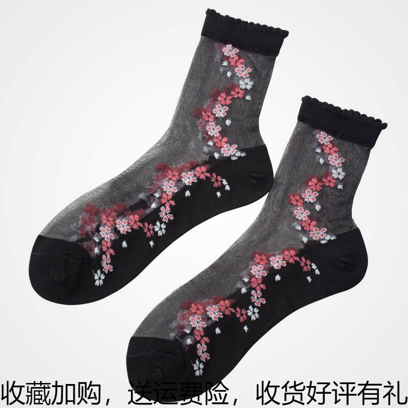 Silk Sox women's crystal silk glass thin section short cotton bottom anti-sweat and sweat transparent autumn winter wear and anti-slip ice silk midcylinder socks