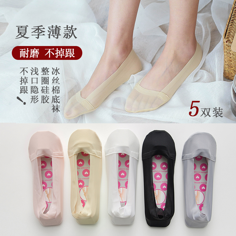 Ice silk lock edge invisible socks spring and summer thin sweat-absorbing deodorant cotton socks women's silicone non-slip low-top socks that don't fall off the heel