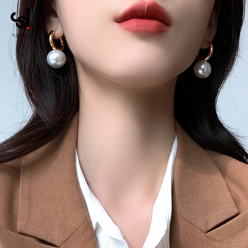 Small circle pearl earrings 2020 new fashion retro drop earrings earrings high-grade sense of Korean temperament earrings women