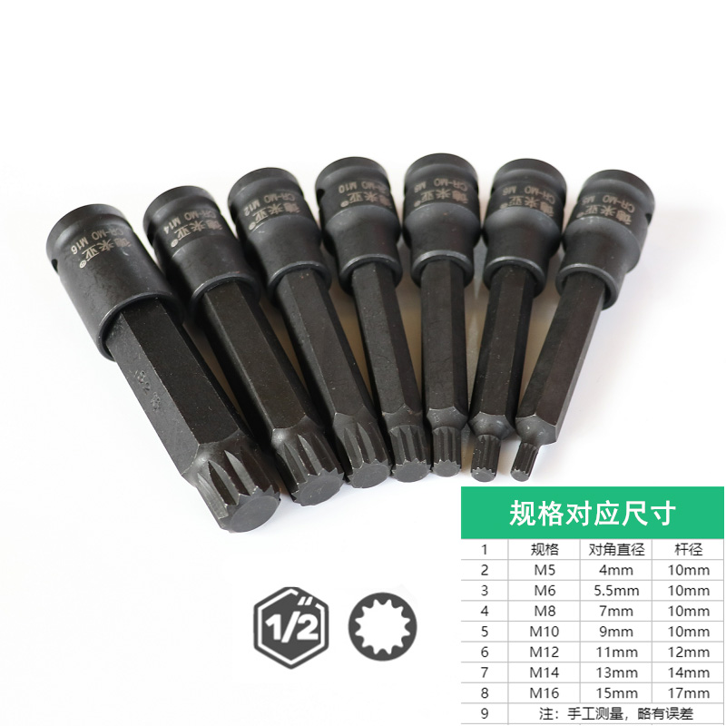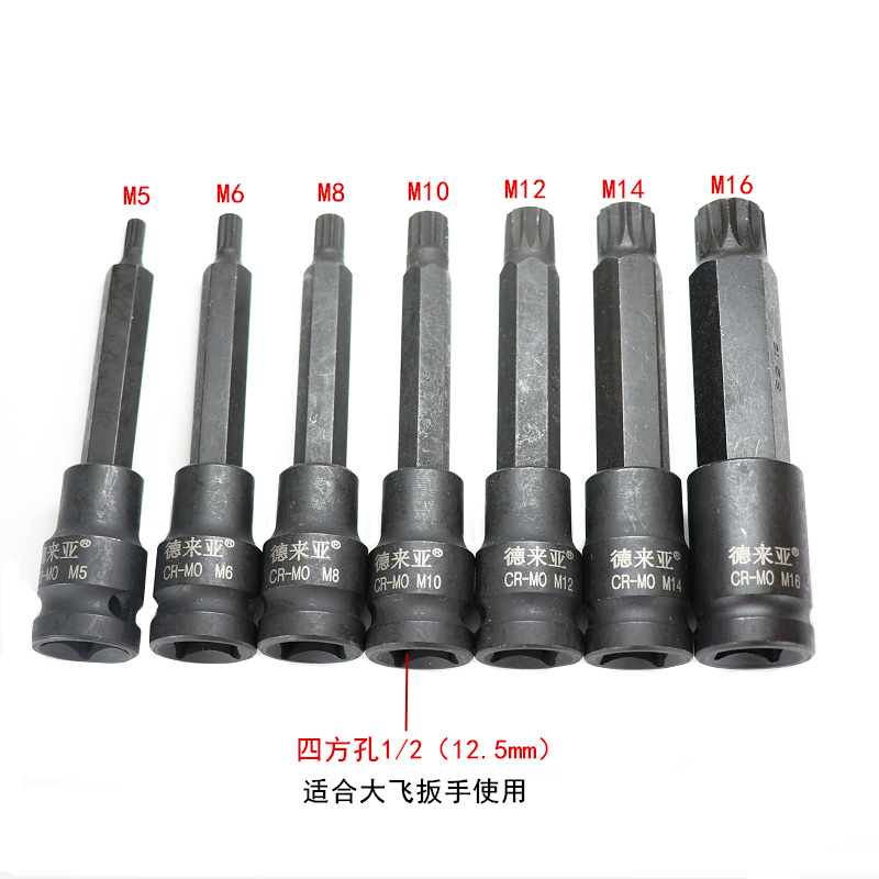 Special length 150mm long rotary tool head pneumatic wrench inner hexagonal sleeve head 12 angle plum blossom batch head large fly 1 2 pneumatic wrench head tool