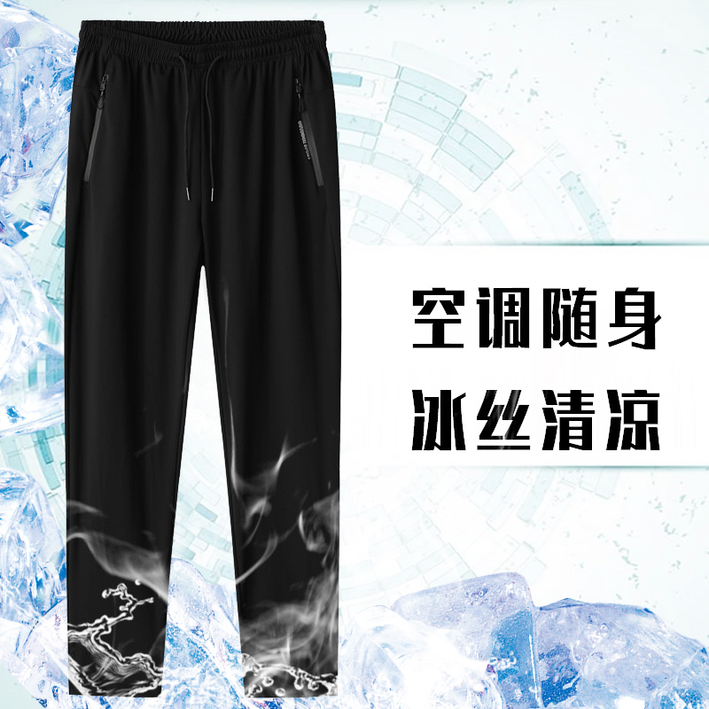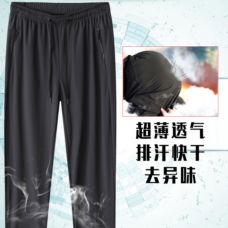 Ice silk elastic quick-drying pants men's summer thin section plus fat plus size outdoor sports ice pants women loose straight tube