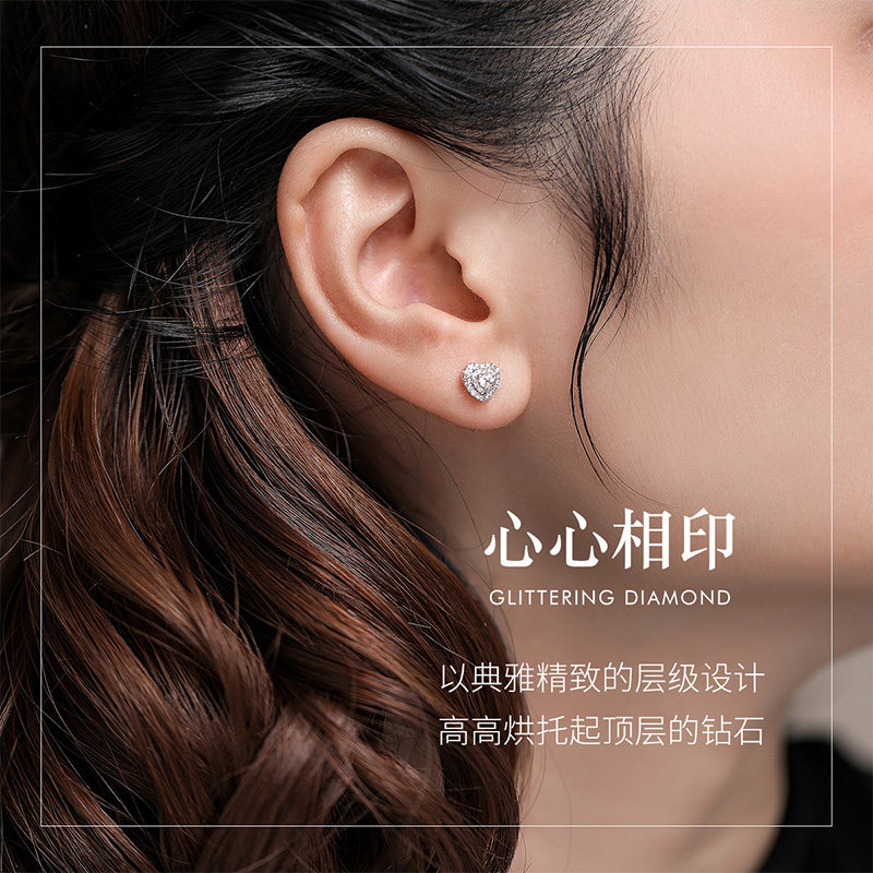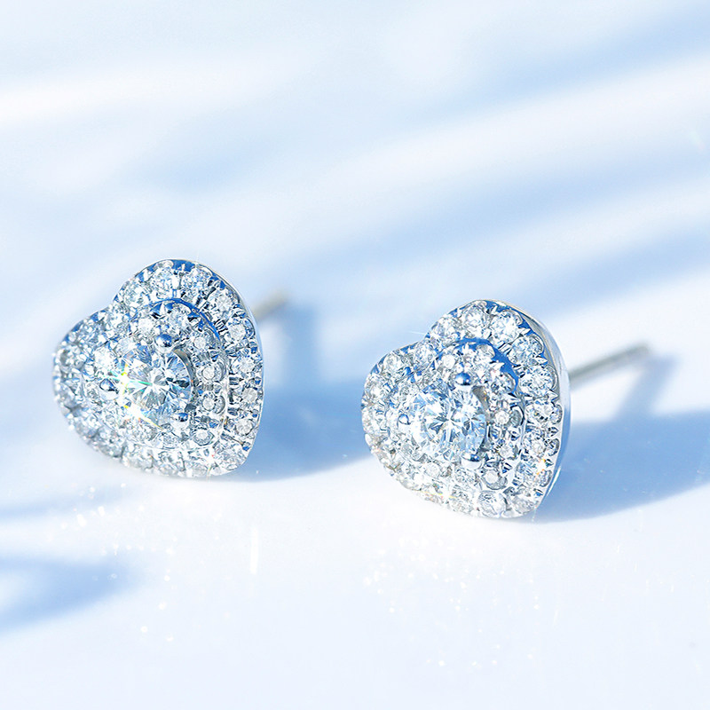 Joy Drilling Diamond Earrings Female White 18K Gold Diamond Earrings 50 Natural Real Drill Heart-shaped Diamond Earrings