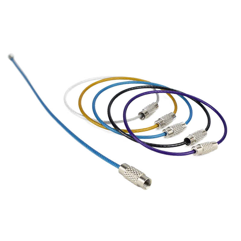 Steel Wire Keyring Keychain Wire Coil Rope Hanging Tag Rope with Lock Multi-function Keyring Key Ring