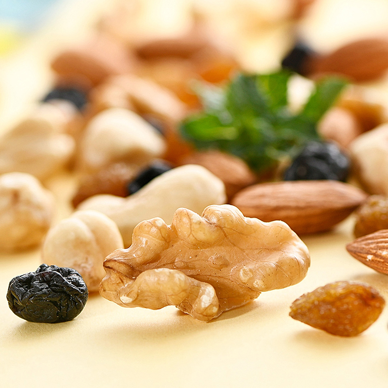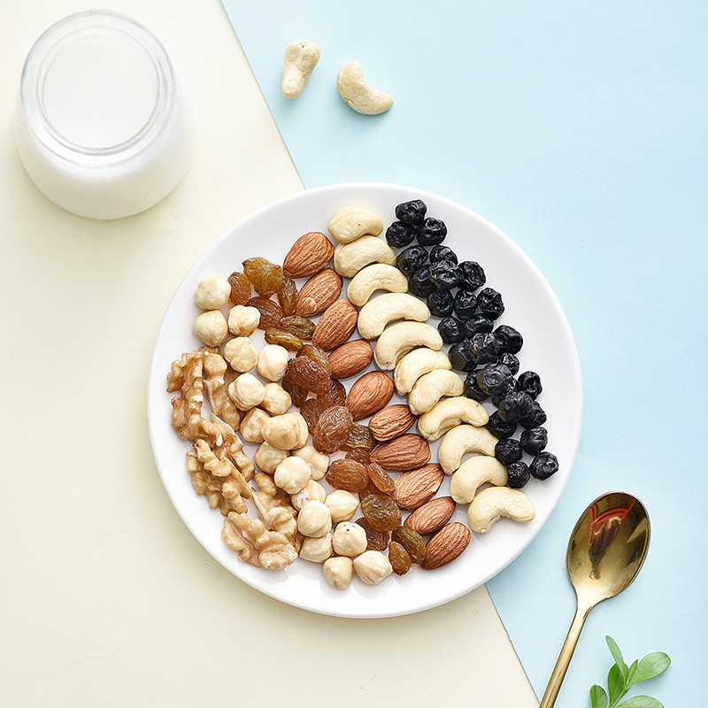 Almonds 26% Walnuts 20% Cashews 18% Blackcurrants 14% Dried Blueberries 12% Hazelnuts 10%