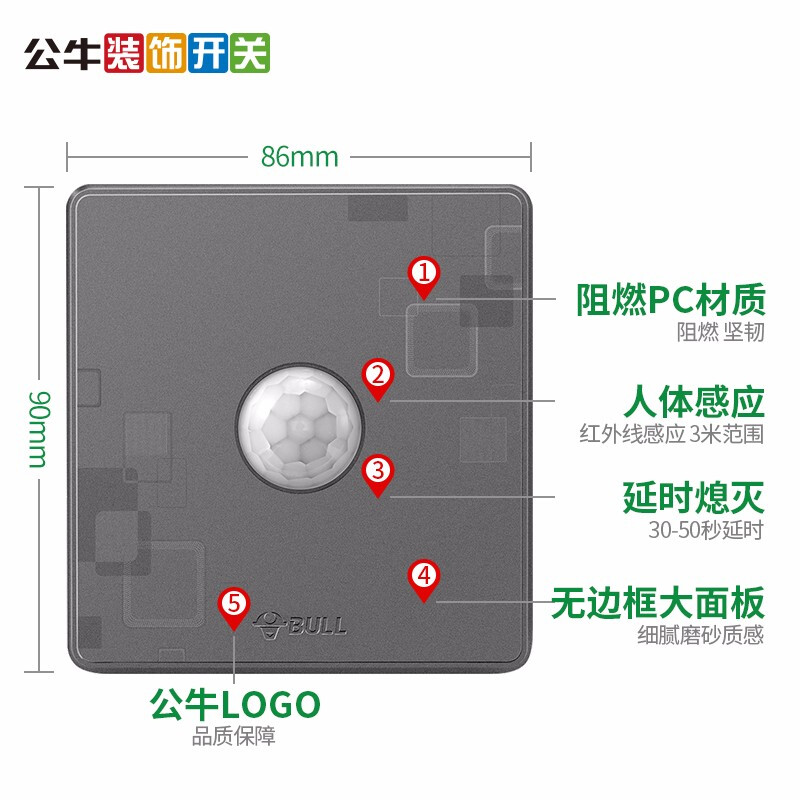 Bull official infrared human sensor corridor proximity delay automatic switch home hotel 220V three-wire system