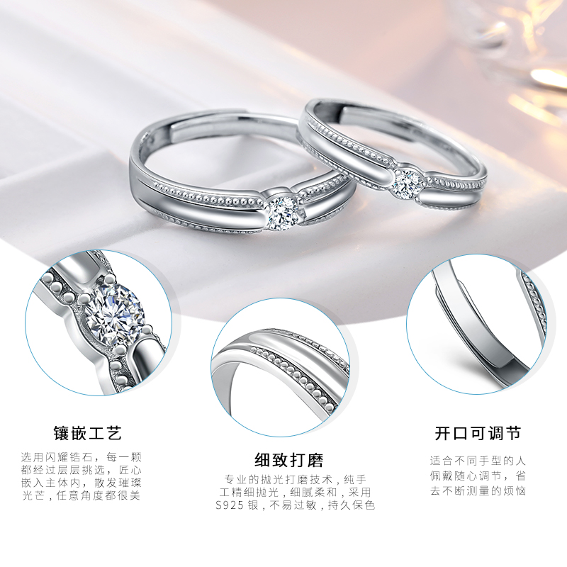 Sterling silver couple rings a pair of men's and women's niche design light luxury simple Japanese-style ring anniversary gift