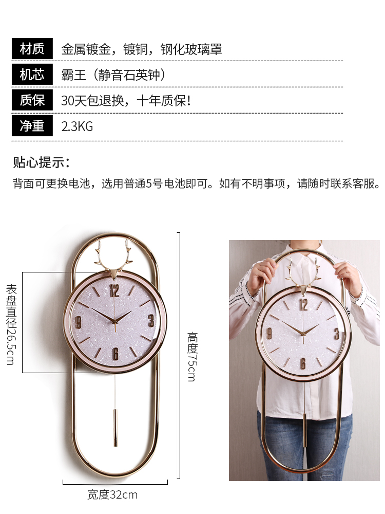 Deer head clock wall clock living room home Net red Nordic light luxury fashion creative simple clock Wall quartz clock