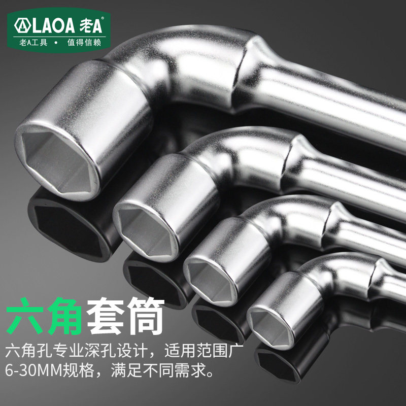 Old A L type sleeve wrench tobacco bucket multifunction 7-shaped elbow threading wrench Outer hexagonal double head repair vehicle tool