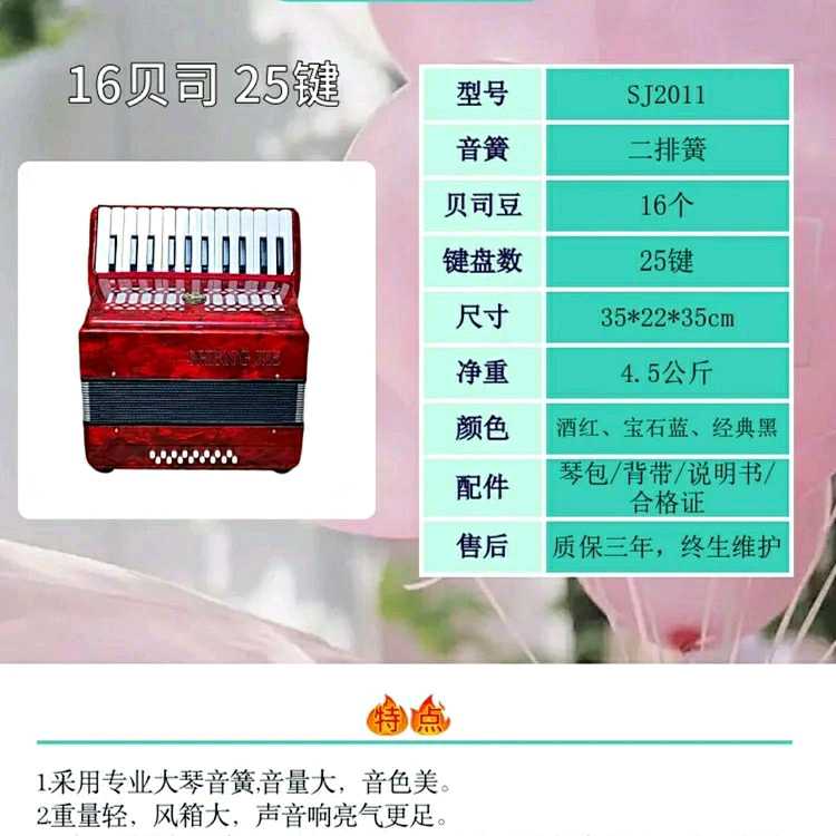 Shengjie brand 16 bass 25 key accordion performance verification examination professional beginner keyboard accordion