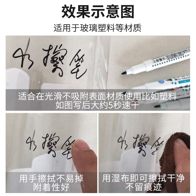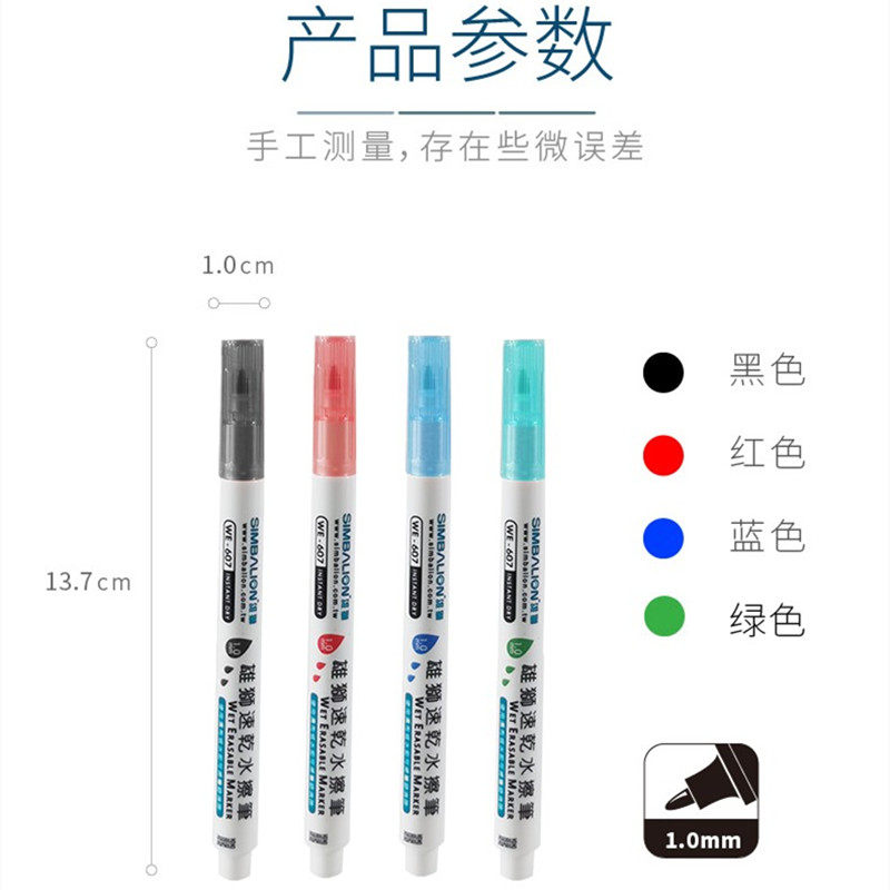 Lion era erasable pen WE-607 water erasable pen 10mm erasable whiteboard pen with water or wet cloth, suitable for non-absorbing surface materials such as glass, water-based erasable marker pen, environmental protection marker pen