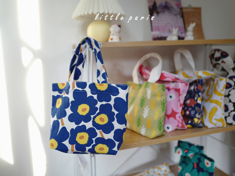 Red western girl's hand carrying bag Nordic white bottom blue in flower handbag small green forest hand carrying bag Nordic black bottom white flower hand carrying bag whale banana hand carrying bag cartoon animal paradise hand carrying bag Nordic