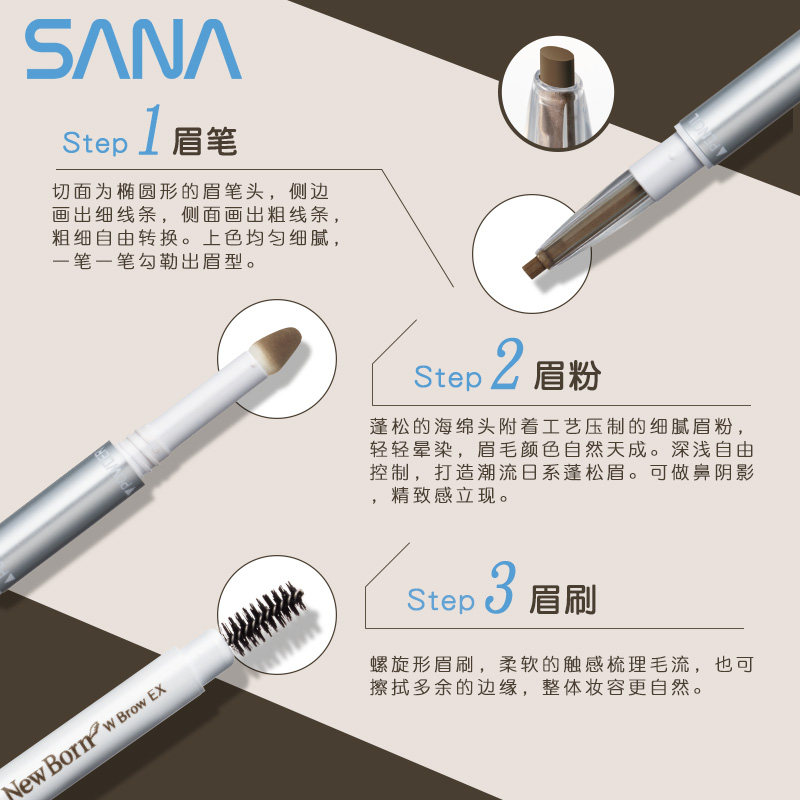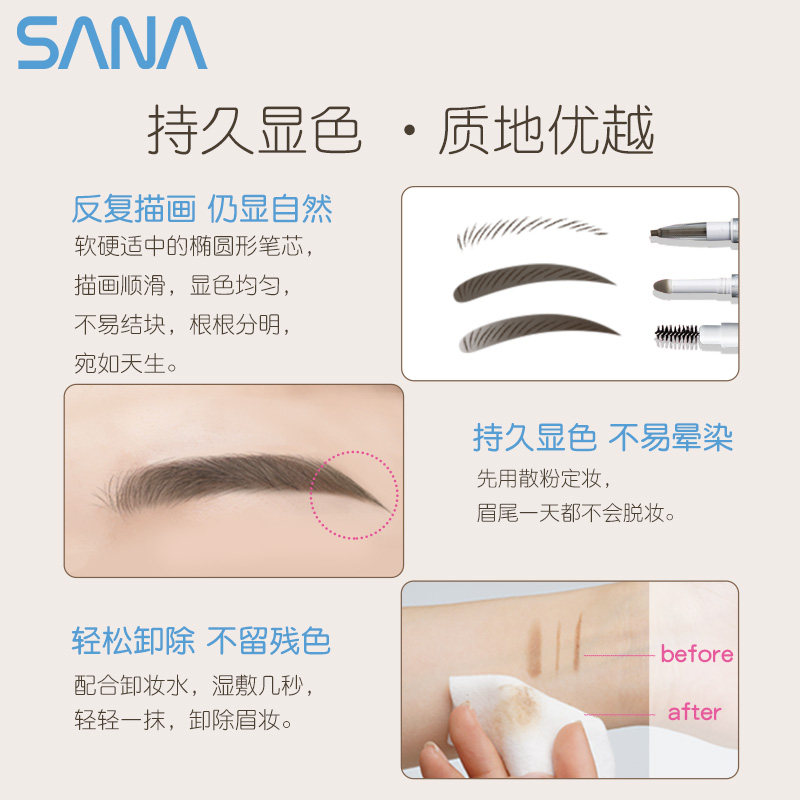 SANA Japan 3-in-1 Brow Pencil 0.5g Waterproof Sweatproof Long Lasting Eyebrow Pencil Brow Powder does not shed natural color