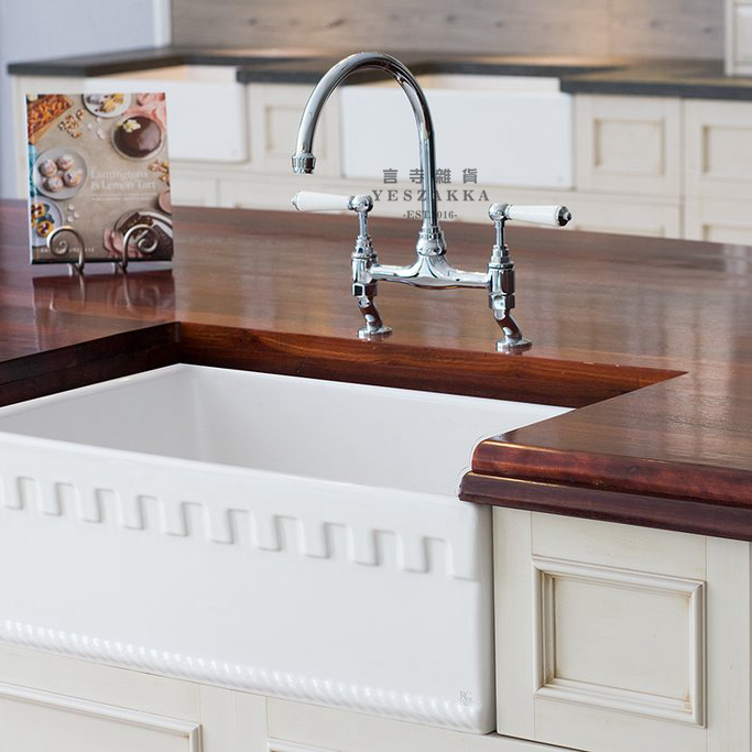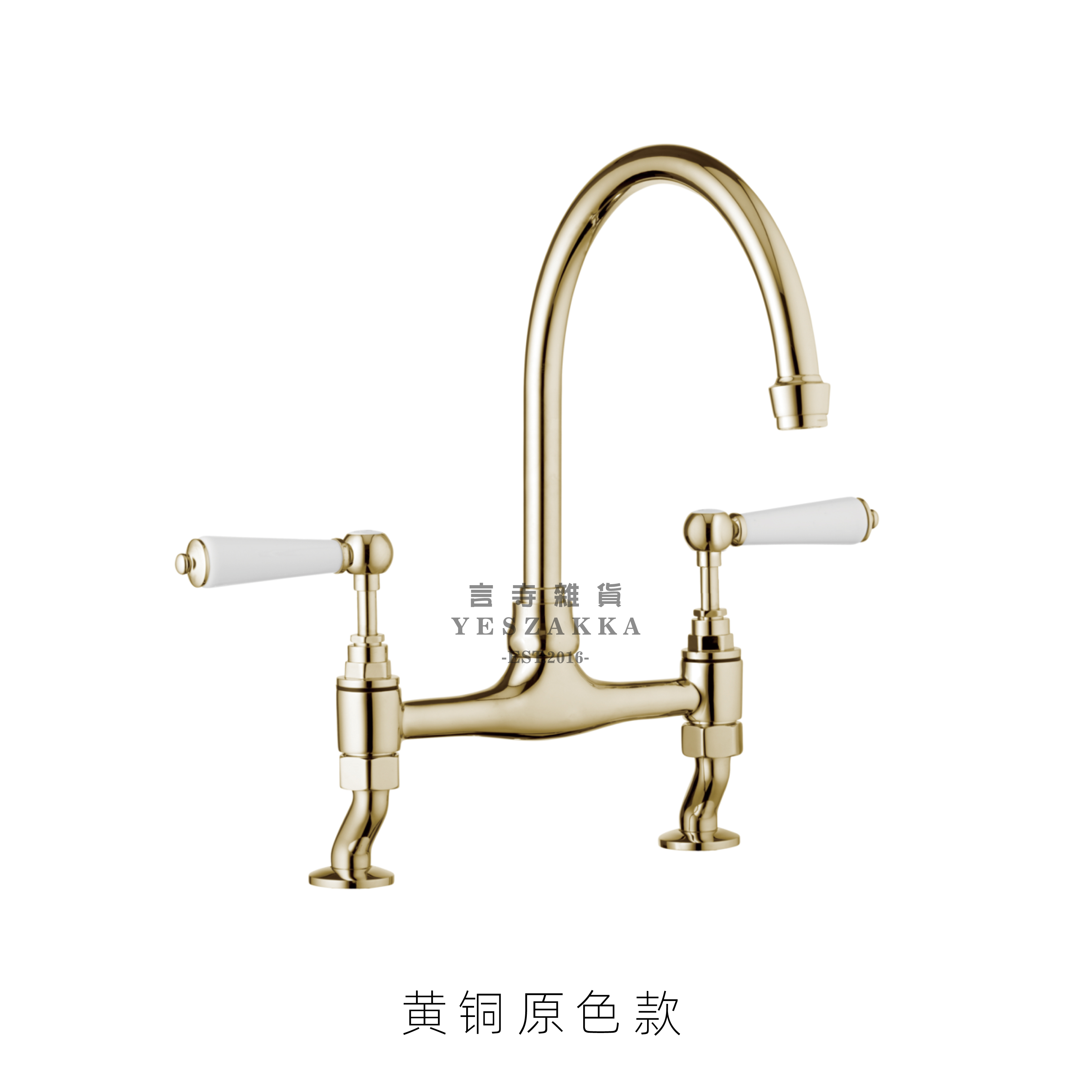 Talking Temple Groceries-Exit Ying style retro full copper kitchen bridge tap hot and cold tap double hole tap