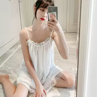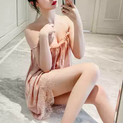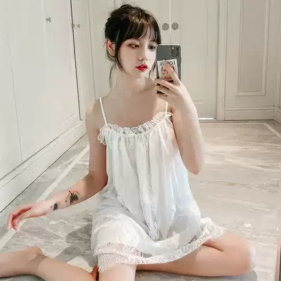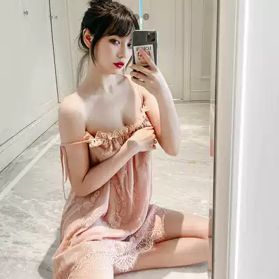Sexy lace sling nightgown women transparent thin summer passion hot temptation teasing teasing fun ice silk pajamas