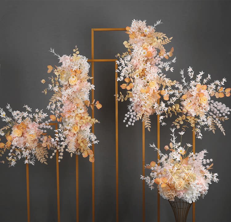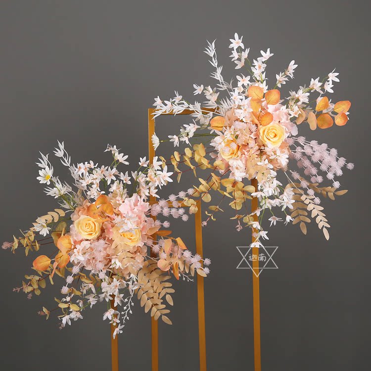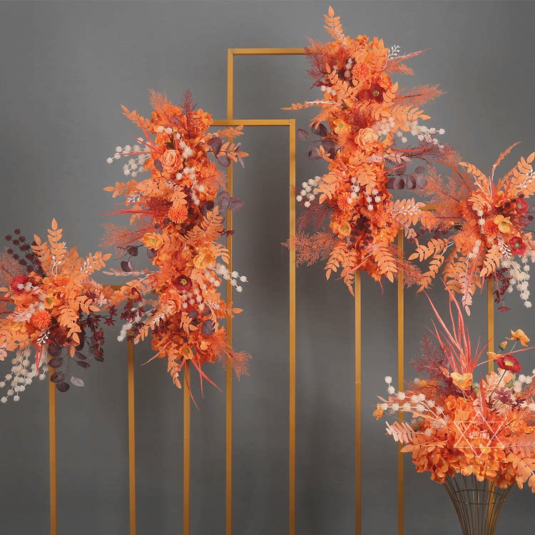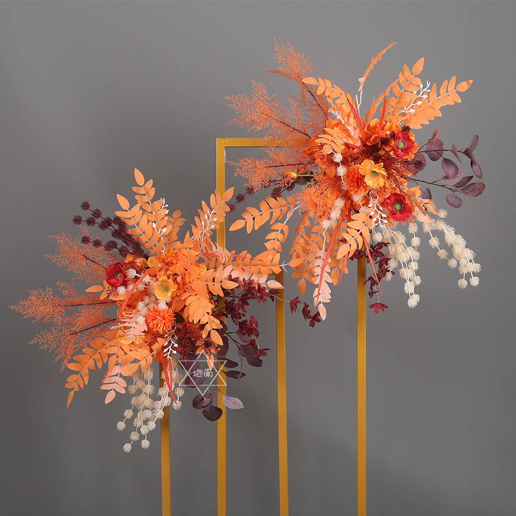 Wedding orange point flower set is the wedding hall finished flower red stage background flower arrangement flower row flower road lead flower