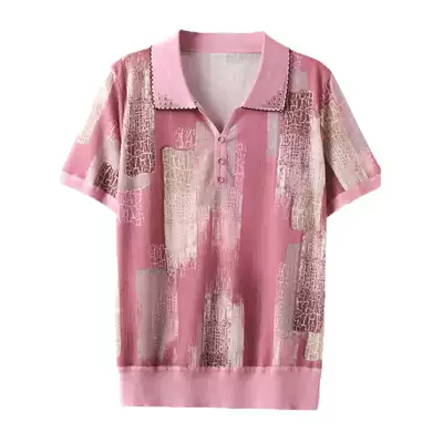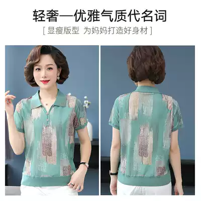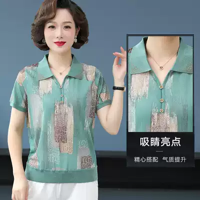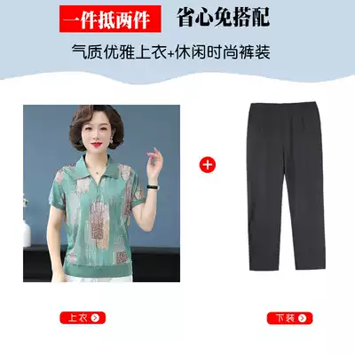 Middle-aged mother summer short-sleeved T-shirt gown small shirt two-piece middle-aged and elderly women Large size ice silk short shirt