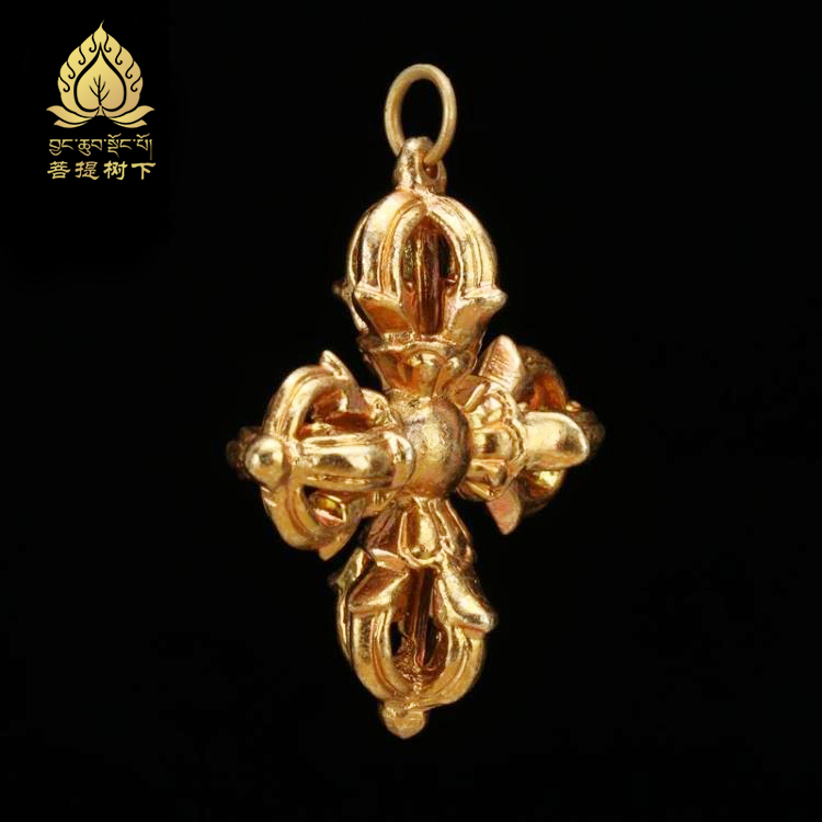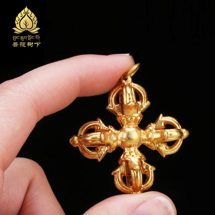 Tibetan-spread pure copper-gold cross-diamond pestle downpestle pendant with Tibetan pendants