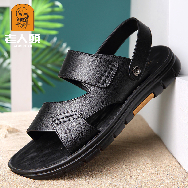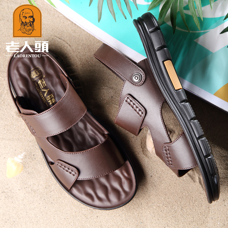 Old man's head sandals men's 2022 Summer new leather men casual beach shoes Soft bottom leather dual-use sandals