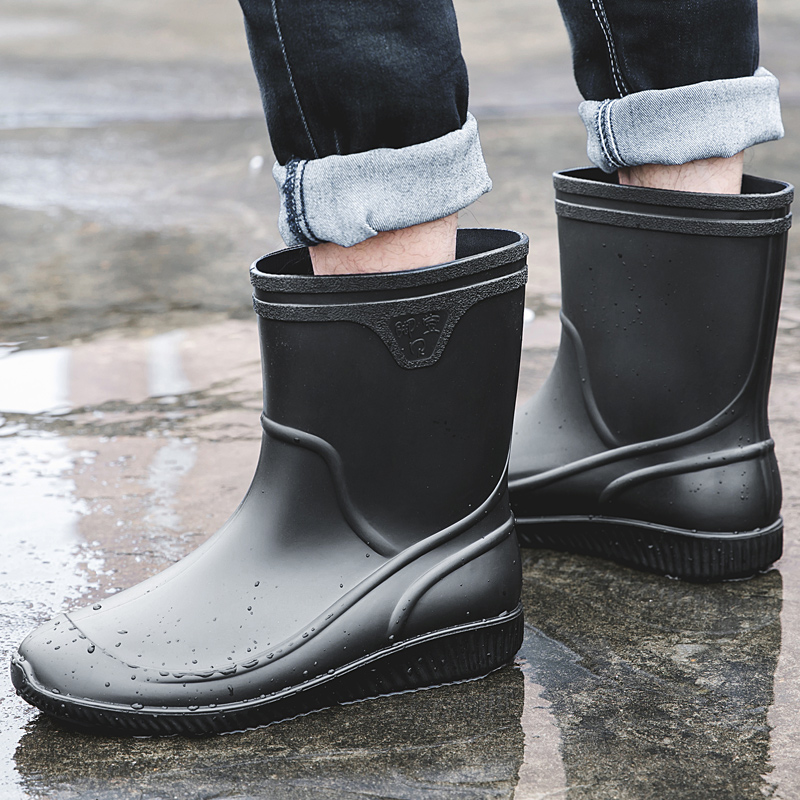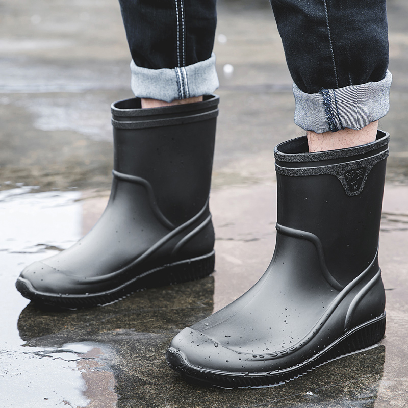 Rain Shoes Men's Mid-Cylinder Fashion Non-slip Waterproof Rain Boots Man Flat Bottom Light Water Shoes Spring Summer Work Han Prints Shoes Rubber Shoes