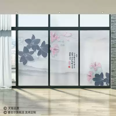 Chinese classical glass stickers Sunscreen shading living room sliding door film Kitchen sliding door and window decals beauty