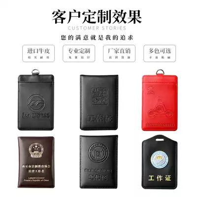 Leather work permit holster Rescue document protection card cover customized staff official cowhide access control card shell customized