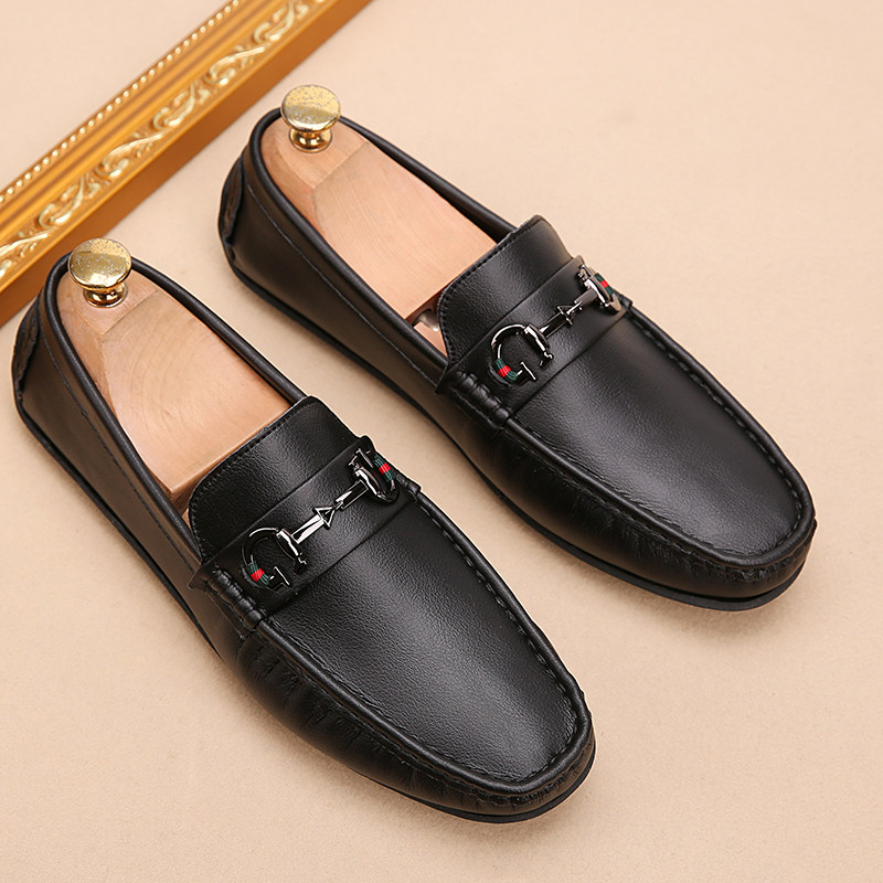 2022 new white beanie shoes men's leather slip-on casual leather shoes Korean version trend lazy all-match driving shoes