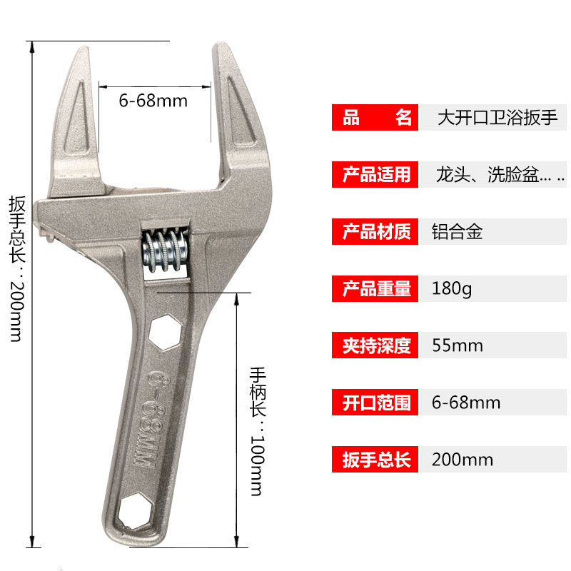 Sanitary wrench large opening short handle activities Universal toolwater pipe clamp water heating handling multi-functional active board