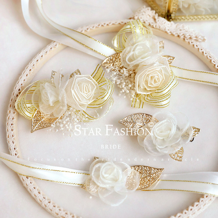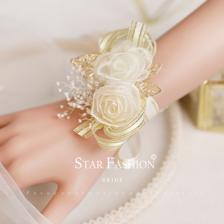 New Korean-style high-end wrist flower bracelet flower champagne dry flower rose bride bridesmaid wedding bride corsage corsage