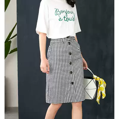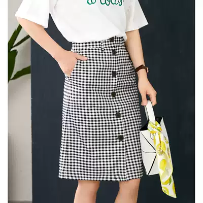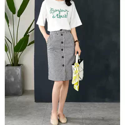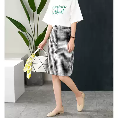 UJIA black and white plaid skirt 2021 summer new Korean chic high waist slim medium long version hip skirt