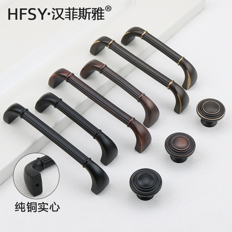 American black pure copper handle Nordic wardrobe overall cabinet door handle light luxury cabinet handle all copper new Chinese handle