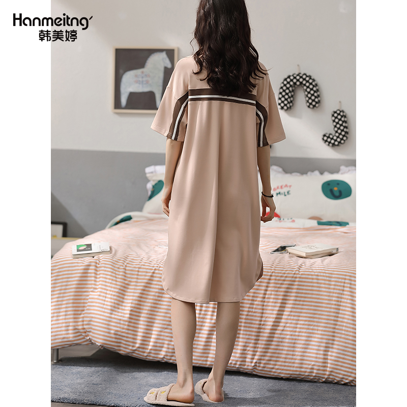 Sleeping Skirt Woman Summer Cardiovert Turtlenecks Pure Cotton Summer Slim Fit Knee Loose Sleepwear Shirt Style Home Conserved Short Sleeve Summer