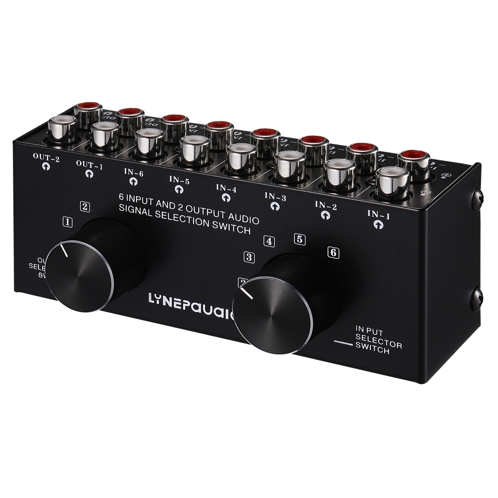 6 in 2 out Audio source signal selection switcher Headphone speaker switching Two-way switching 2 in 6 out Lossless