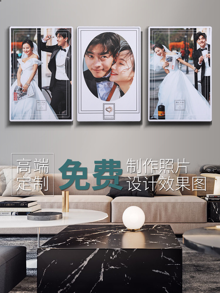 Wedding photo frame hanging on the wall to make a photo studio post-production photo enlargement wedding 8-piece set is customized to make a photo album