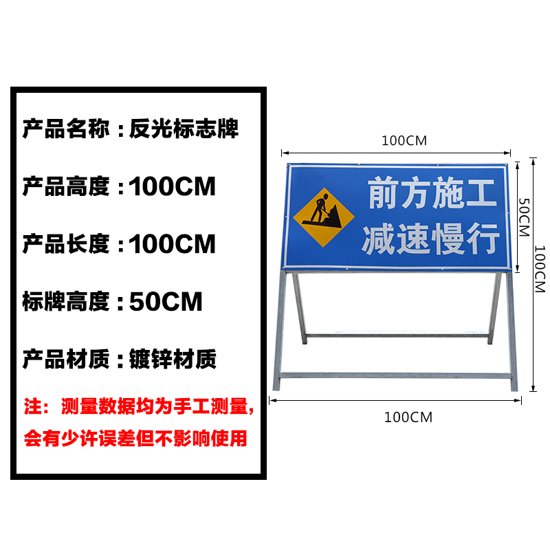 Traffic reflective sign plate Construction safety warning signs in front construction with mobile iron frame