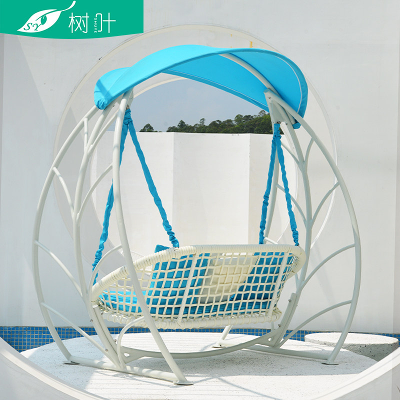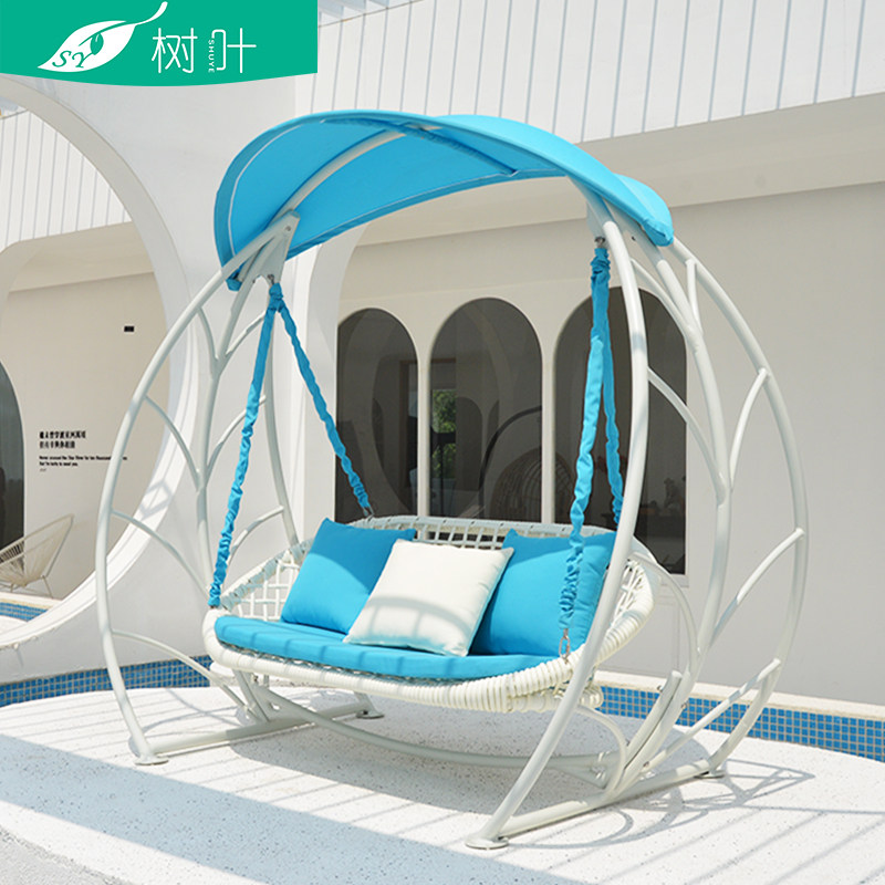 Outdoor swing courtyard home aluminum alloy rattan hanging chair double three outdoor balcony leisure rocking chair swing swing