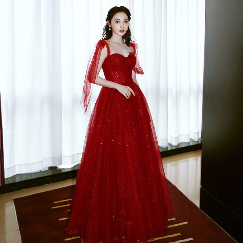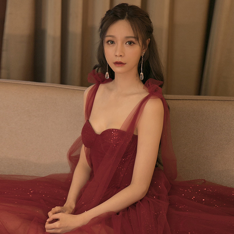 Toast Bride 2020 Summer new style can wear red sling temperament wedding party evening dress