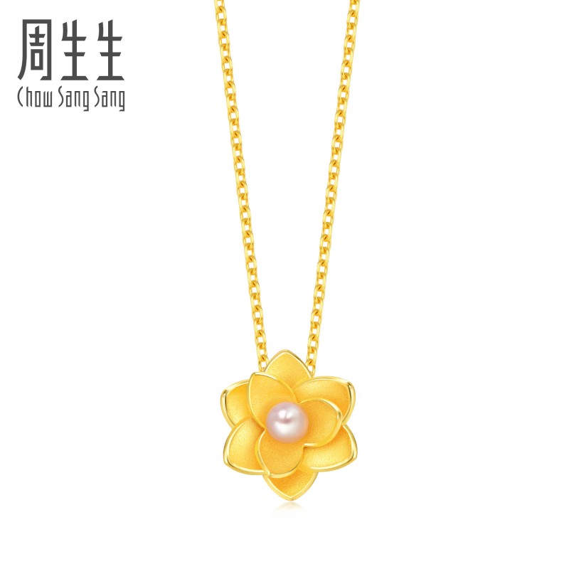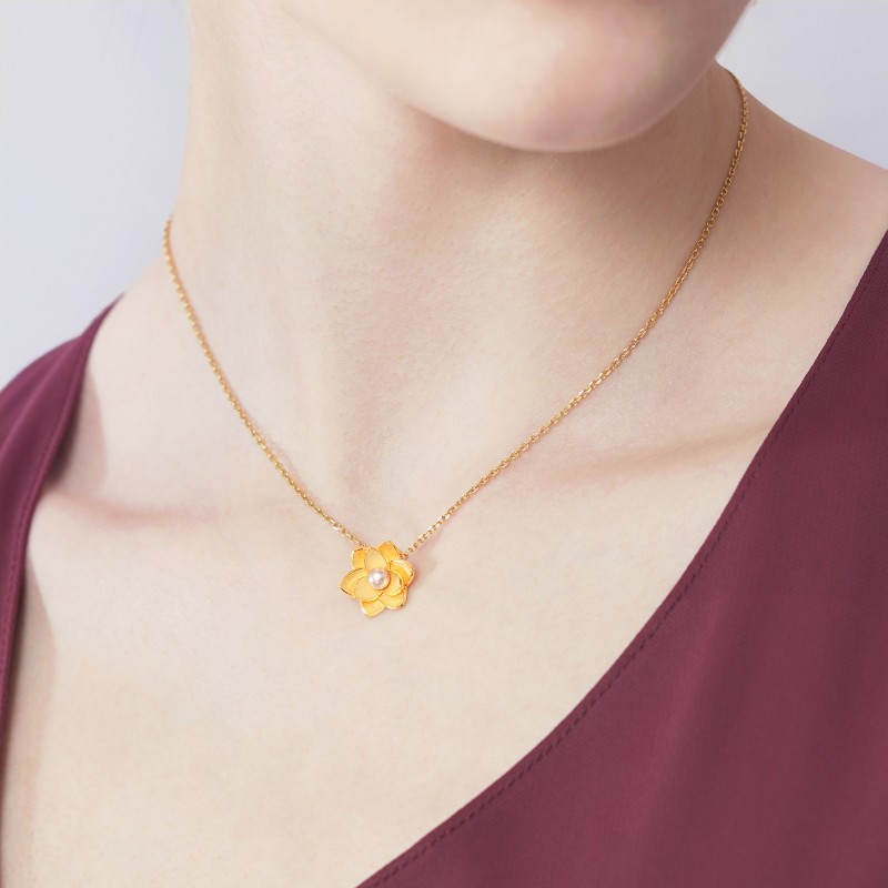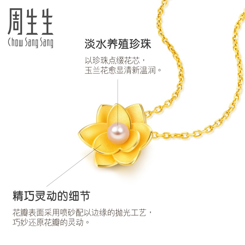 Zhou biological gold foot gold raw with Jade Orchid Pearl Pendant Female Wedding Gift Gold Jewelry 91752P