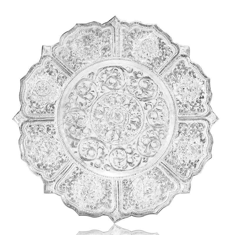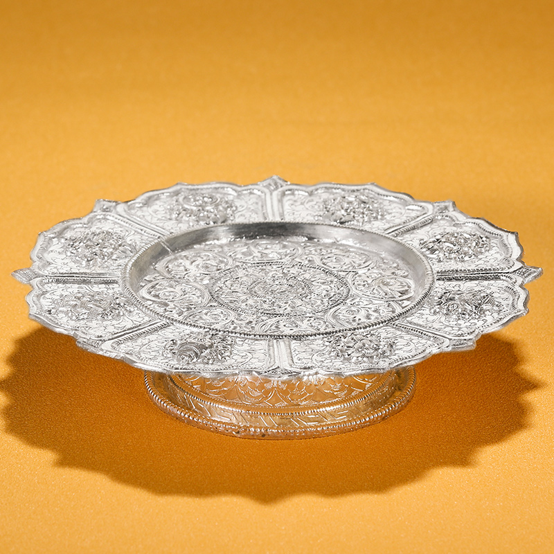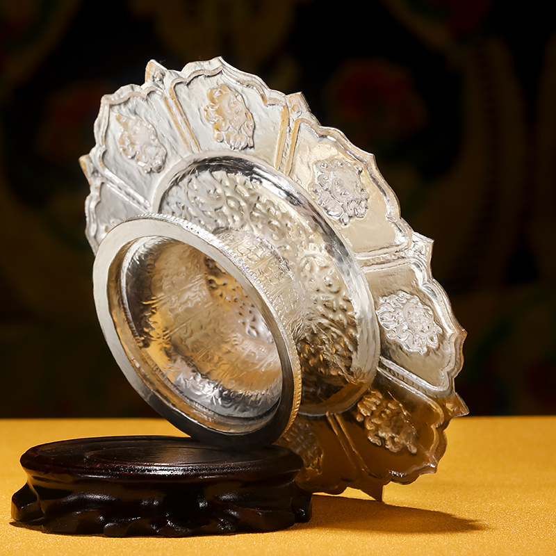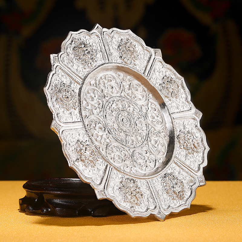 Nepal sterling silver manza tray tray compote chassis base lotus shape eight auspicious with 9cm manza